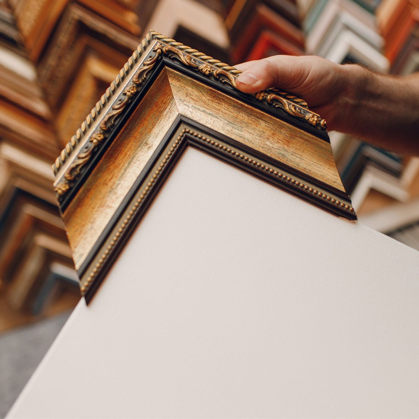 Le choix de la baguette est une étape essentielle dans la conception d’un cadre. Elle apporte caractère, style et finition, et reflète le soin que nous mettons à valoriser vos œuvres. Avec notre large sélection de modèles et de finitions, vous trouverez celle qui sublimera parfaitement votre œuvre.