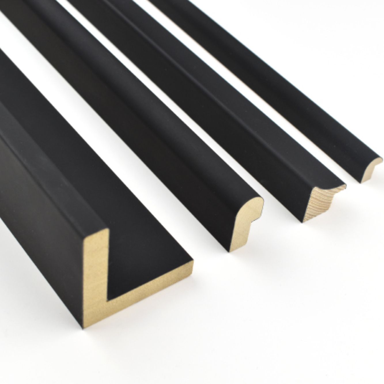 Un grand nombre de modèles est disponible directement à la coupe en atelier. Pour les cadres à coins bouchés ou certaines baguettes ou finitions spécifiques, la disponibilité se fait sur commande afin de garantir un résultat parfaitement ajusté.