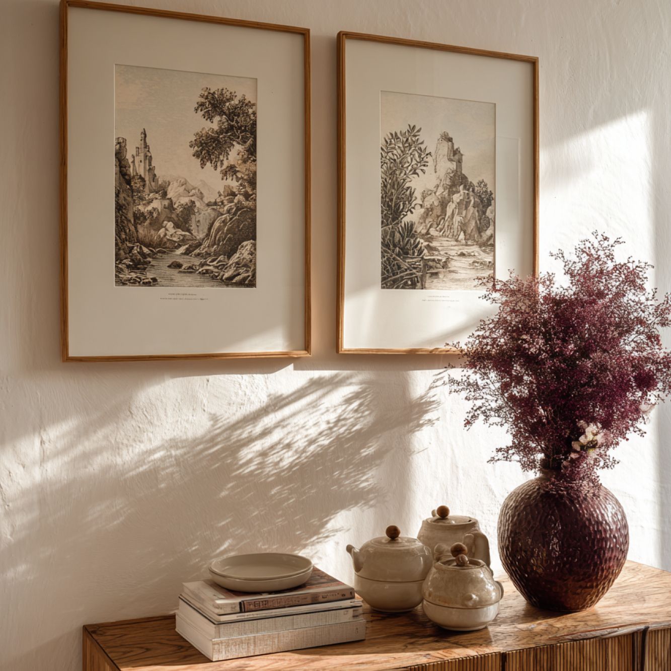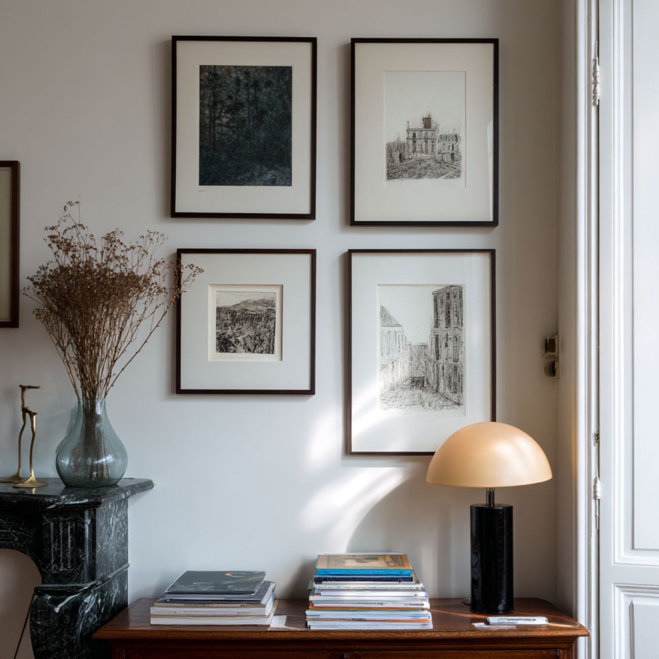 Le choix dépend du style de l’œuvre, de sa taille et de vos goûts. Les moulures fines et sobres conviennent souvent aux lithographies contemporaines, tandis que des cadres plus travaillés s’accordent avec des œuvres classiques. Un passe-partout est recommandé pour éviter que le papier touche le verre et pour créer un espace visuel harmonieux.